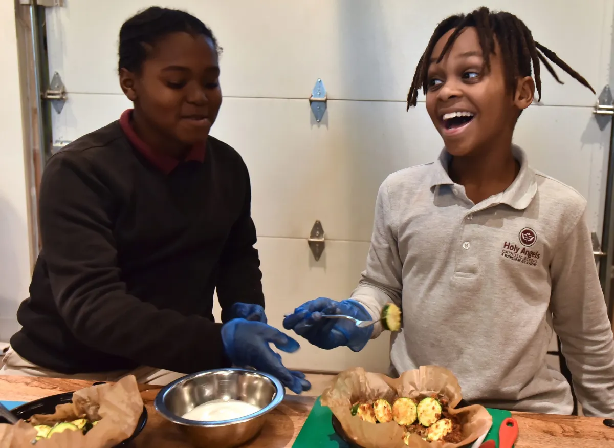 Young chefs learned about kitchen safety, baking techniques, and food handling skills in an 8-week program, where they prepared tasty treats to share with their families, like sweet potato pies, fruit pizza, and banana bread.