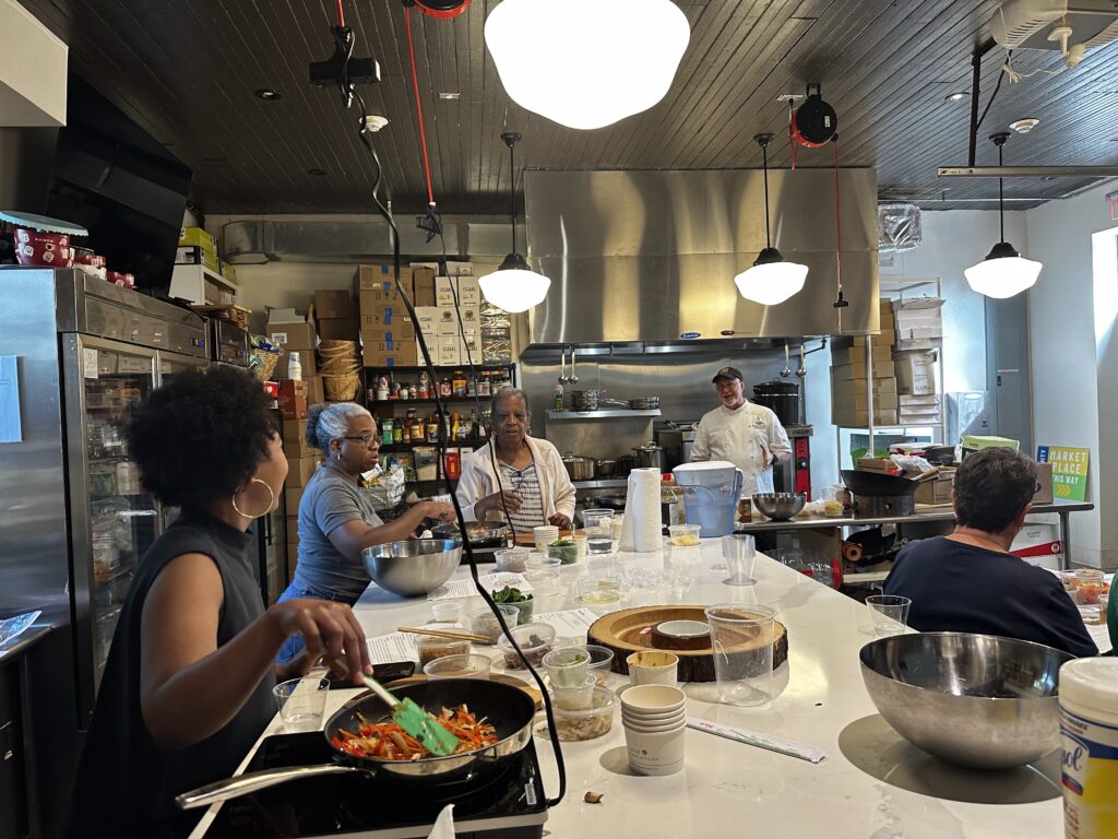 Through demonstrations, hands-on cooking, and discussions, our community members learned the benefits of a plant-based diet. Participants prepared vegan dishes including Jamaican lentil curry, jackfruit carnitas, and margherita pizza.
